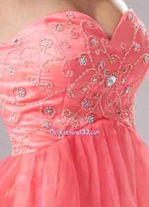 Sweetheart Organza Beading Mini-length 16 Birthday Party Dress in Watermelon