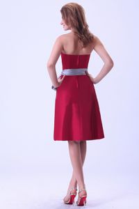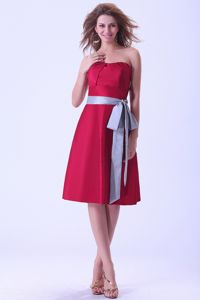 Sweetheart Red Knee-length Dama Dress With a Sash in Chiffon