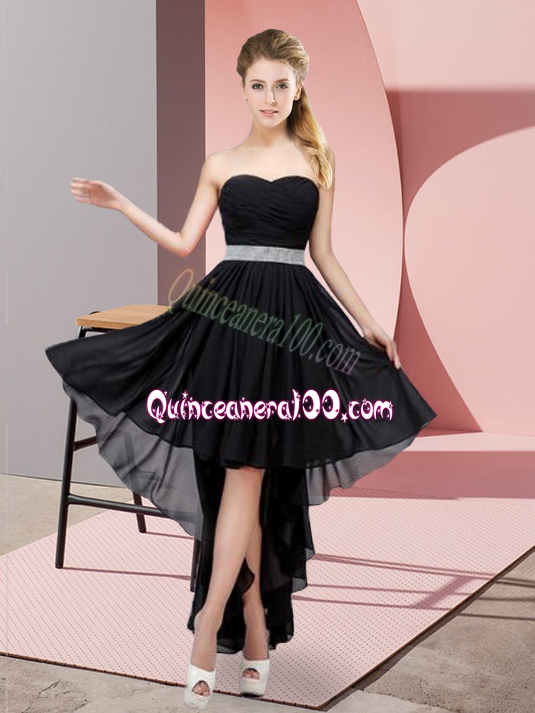 Sweetheart Sleeveless Lace Up Vestidos de Damas Black Chiffon