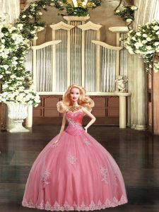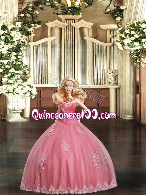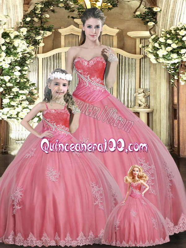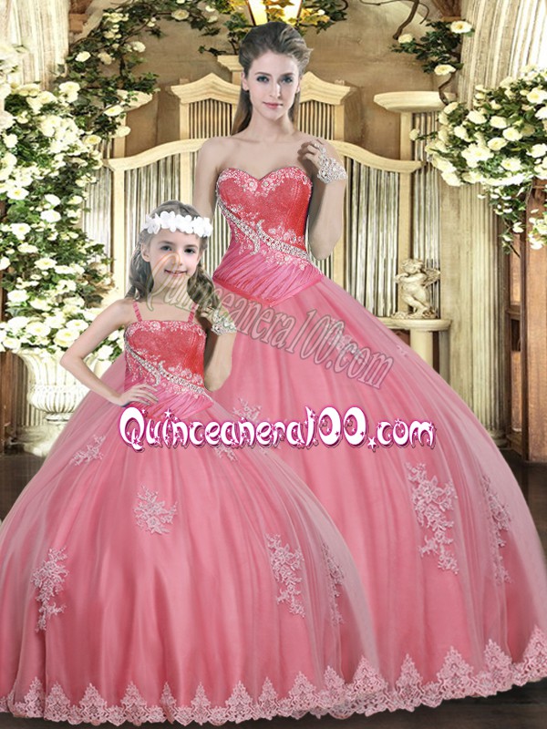 Sweetheart Sleeveless Lace Up Vestidos de Quinceanera Watermelon Red Tulle