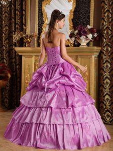 Taffeta Lavender Pick-ups Strapless Quinceanera Gown Beaded