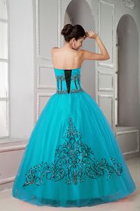 Teal Ball Gown Tulle Sweet Sixteen Dresses with Appliques