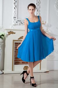 Teal Empire Straps Knee-length Chiffon Ruching Damas Dresses For Quince