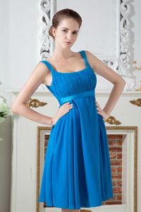 Teal Empire Straps Knee-length Chiffon Ruching Damas Dresses For QuinceTeal Empire Straps Knee-length Chiffon Ruching Damas Dresses For Quince