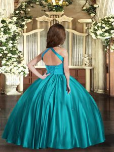 Teal Sleeveless Ruching Floor Length Little Girl Pageant Gowns