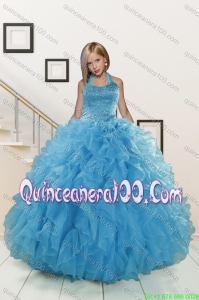 Teal Sweetheart Ruffles Quinceanera Gown and Sweetheart Short Dama Dresses and Teal Halter Top Flower Girl Dress