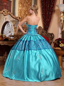 Teal Sweetheart Taffeta Quinceanera Dresses with Embroidery