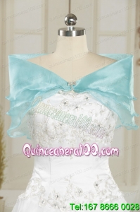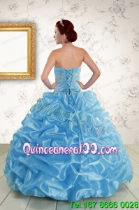 Traditional Strapless Beading and Pick Ups 2015 Quinceanera Dresses in Baby Blue