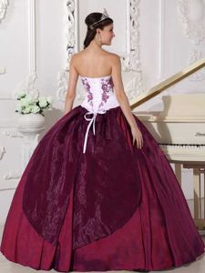 Traditional White and Wine Red Dress for Quince with Embroidery