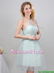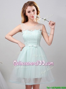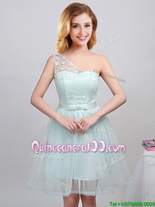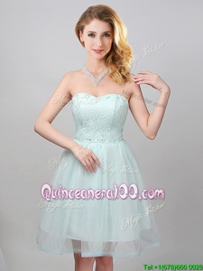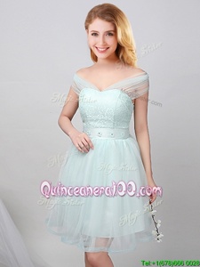 Trendy Mini Length Apple Green Quinceanera Court Dresses Off The Shoulder Sleeveless Lace Up