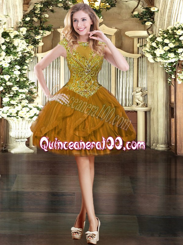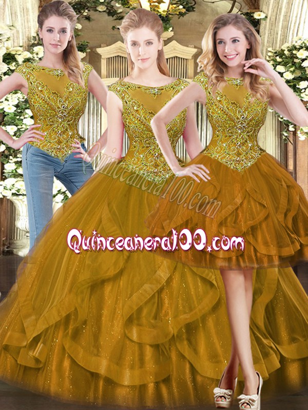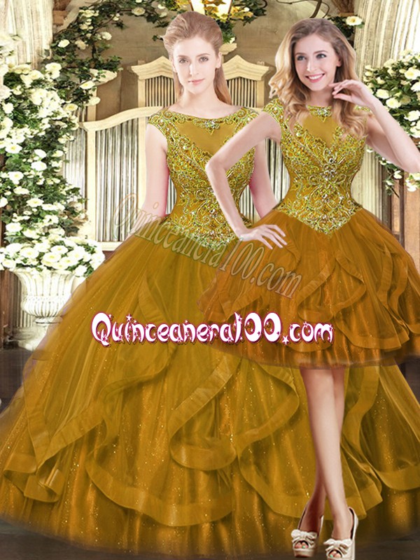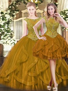 Tulle Sleeveless Floor Length Sweet 16 Quinceanera Dress and Beading and Ruffles