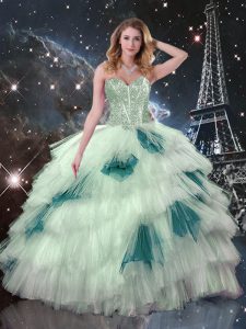 Tulle Sweetheart Sleeveless Lace Up Beading and Ruffled Layers and Sequins Sweet 16 Dress in Multi-color