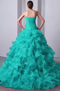 Turquoise Layered Ruffles Beaded Miss World Sweet 15 Dresses with Train on SaleTurquoise Layered Ruffles Beaded Miss World Sweet 15 Dresses with Train on Sale