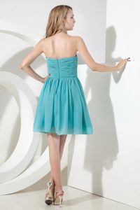 Turquoise Princess Sweetheart Knee-length Ruching Quince Dama DressesTurquoise Princess Sweetheart Knee-length Ruching Quince Dama Dresses