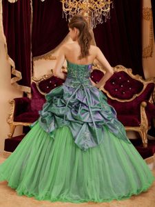 Two Toned Green Strapless Quinceanera Gown with Pick ups Appliques