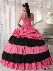 Two-toned V-neck Appliqued Quinceanera Gowns with Flowers