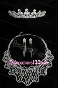 Princess Rhinestone Jewelry Set Including Necklace Tiara And Earrings