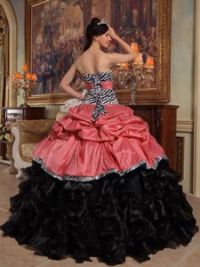 Watermelon and Black Ruffled Quince Dresses with Zebra PrintWatermelon and Black Ruffled Quince Dresses with Zebra Print