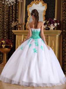 White and Apple Green Dress for Quinceanera Party with Appliques