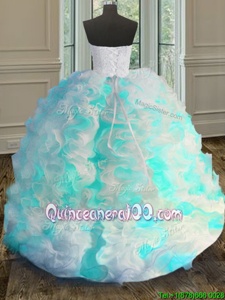 White and Green Sweetheart Neckline Beading and Ruffles Sweet 16 Dresses Sleeveless Lace Up