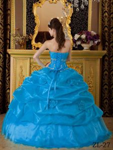 White Appliques and Ruffles Overlay Dress For Quinceanera in Baby BlueWhite Appliques and Ruffles Overlay Dress For Quinceanera in Baby Blue
