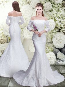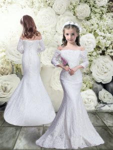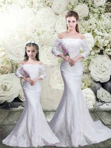 White Lace Lace Up Quince Ball Gowns 3 4 Length Sleeve Brush Train Lace