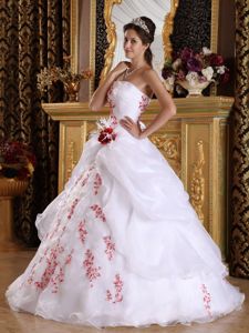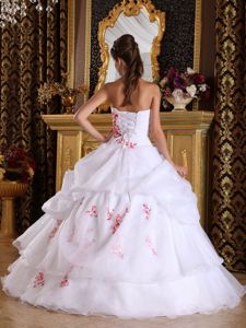 appliques organza prom dresses for quinceanera in el tigre, White Princess Pick-ups Dresses for a Quince with Red Appliques