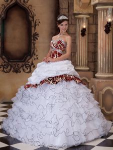 White Sweetheart Pick-ups and Ruffles Leopard Quinceanera Gown