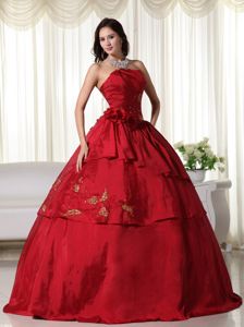 Wine Red Strapless Beading Tiered and Pleated Sweet Sixteen Dresses