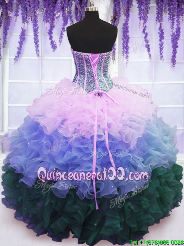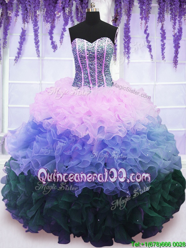 Wonderful Multi-color Sweetheart Lace Up Beading and Ruffles and Ruffled Layers Quince Ball Gowns Sleeveless