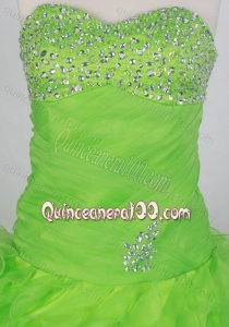 Wonderful Spring Green Beading and Ruffles Sweetheart Quinceanera Dresses