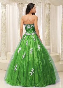 Wonderful Spring Green Paillette Sweet 16 Dress with Appliques