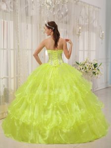 Yellow Floor-length Layered Organza Beaded Dress for Quince