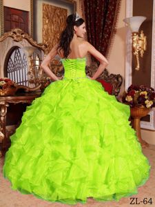 Yellow Green Organza Quinceanera Dress with Sweetheart Neck and BeadingYellow Green Organza Quinceanera Dress with Sweetheart Neck and Beading