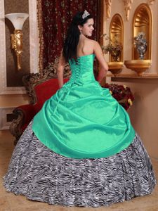 Zebra Printing Dress Quinceanera Beading and Ruches in Apple GreenZebra Printing Dress Quinceanera Beading and Ruches in Apple Green
